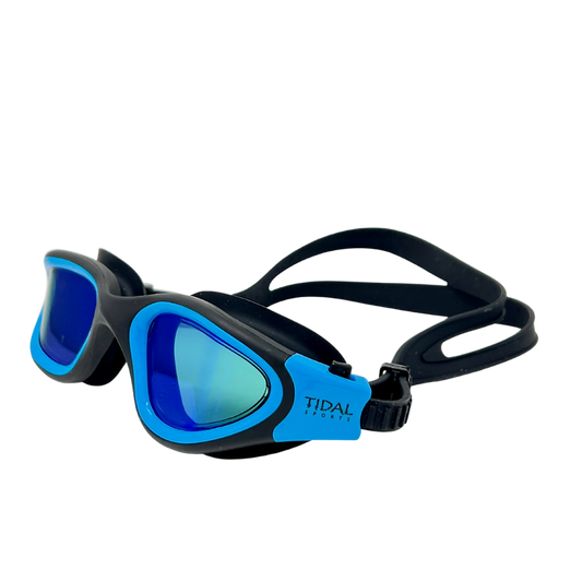 Tidal Tempered Glass Lenses: Dual lens with solid colored skirts High quality, soft silicone skirt and two-way adjustable strap for enhanced comfort and to prevent leaking.