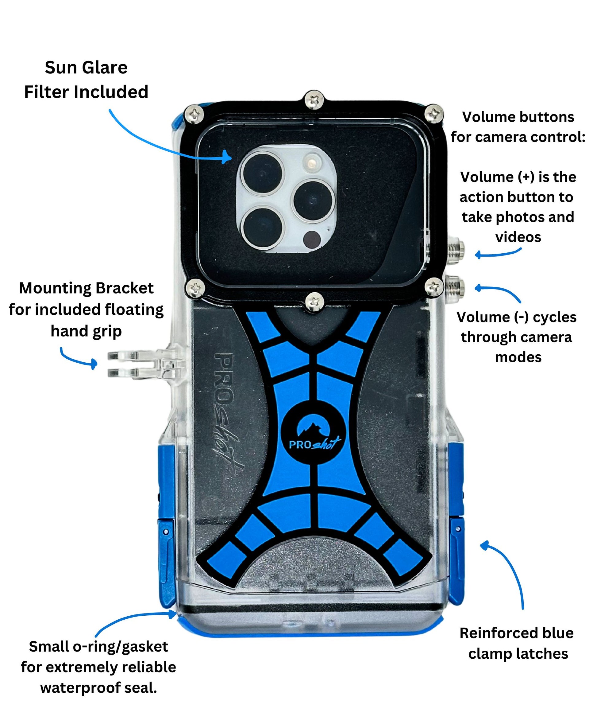 The ProShot Dive 2.0 is an ultra waterproof, durable, and shockproof housing, compatible with ALL iPhone models that gives you the freedom to take your phone anywhere and capture any moment.