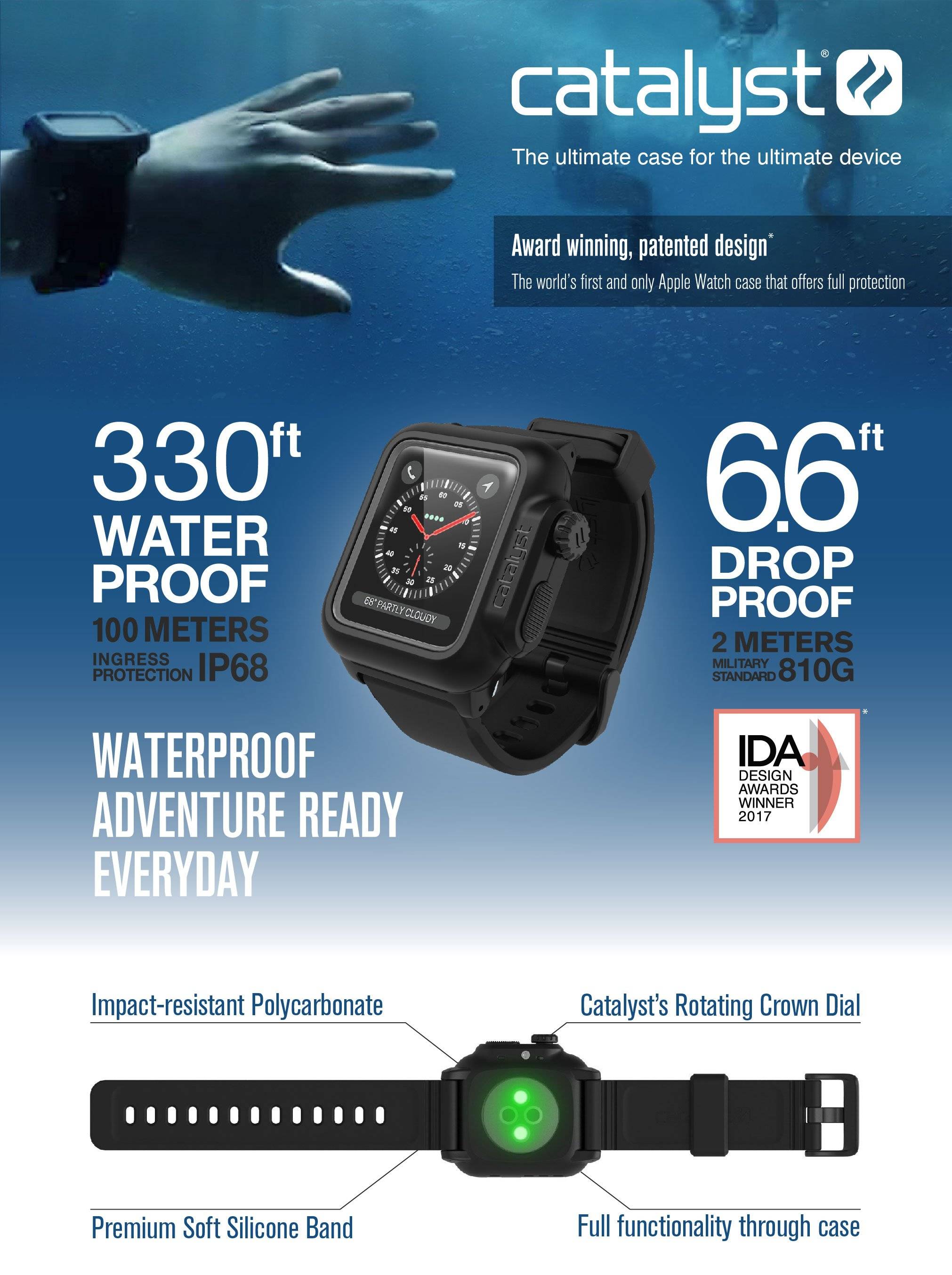 The Catalyst Waterproof Case for Apple Watch Series 3 is the most waterproof case on the market providing drop proof protection while maintaining full functionality of your Apple Watch.